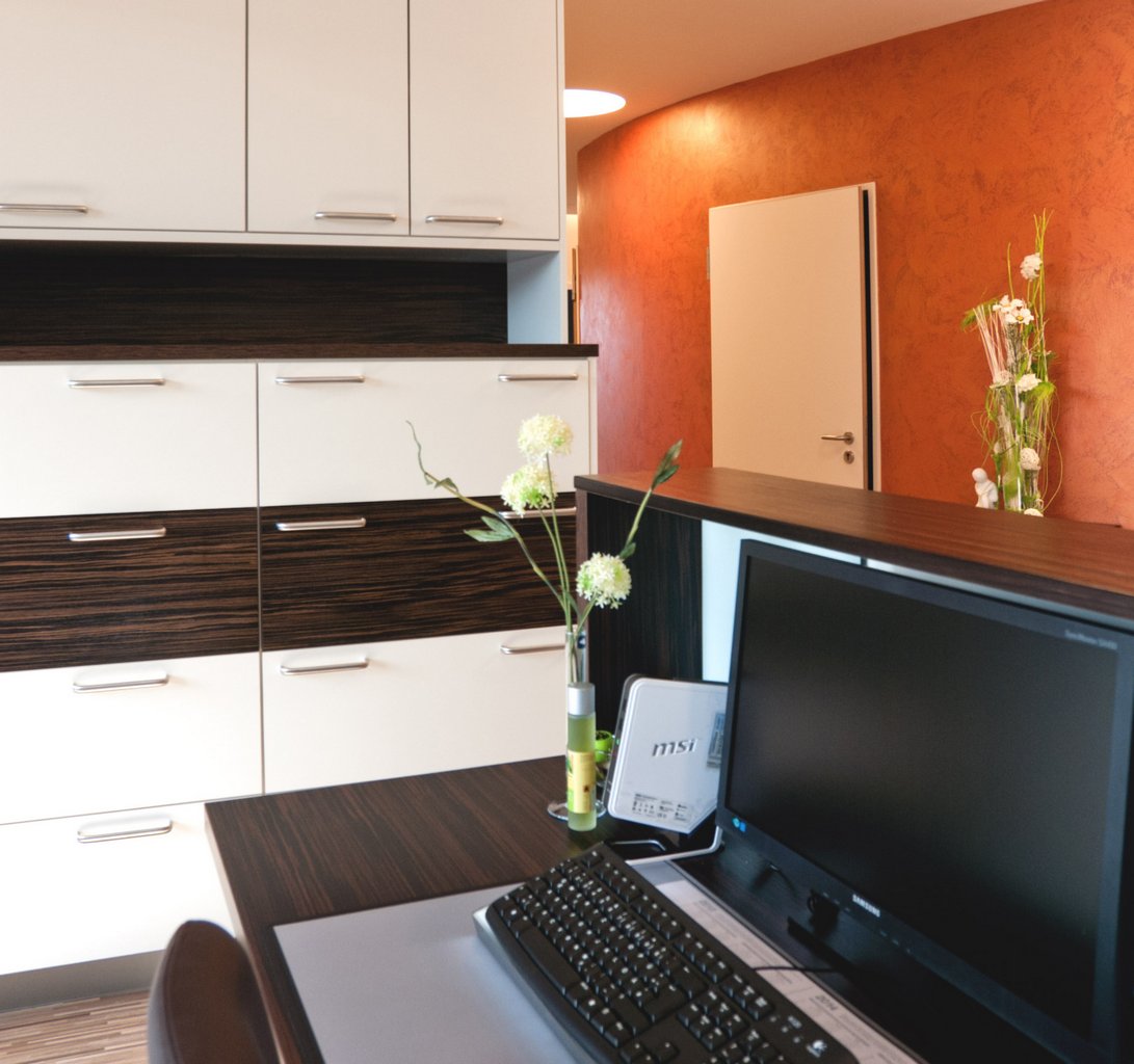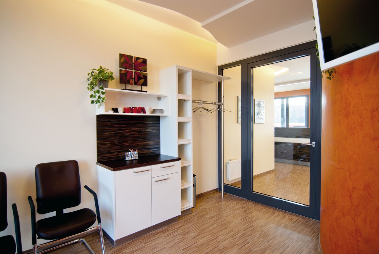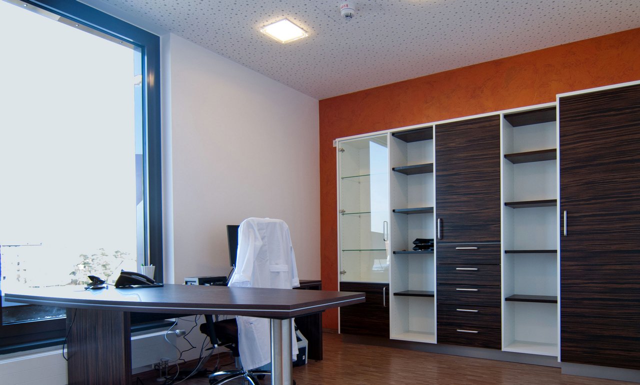 Für besondere Infektionskrankheiten, mit hohem Krankheitspotential wie MRSA, ESBL, Hepatitis, HIV und EHEC, wurden spezielle Isolationsräume mit ¬Schleusen geschaffen. Hier können, unter strengsten Hygienevorschriften, bis zu 3 infektiöse Patienten gleichzeitig dialysiert werden. Auf Grund unserer Erfahrung bei einer Vielzahl von durchgeführten Projekten in dieser Fachrichtung, mit einer Größenordnung von bis zu 60 Dialyseplätzen, konnten wir unsere ganze Fachkenntnis einbringen und ein für den Betreiber und die Patienten optimales Dialysezentrum konzipieren, welches als internistisch-¬nephrologische Schwerpunktpraxis nach DIN EN ISO 9001 zertifiziert ist, und regelmäßig auditiert wird, nach i-med-cert. Unsere Leistung umfasste die Grundrissplanung, die Integration der Medizintechnik, die gesamte innenarchitektonische Praxisgestaltung, einschließlich der Möbel- und Einrichtungsplanung. Des Weiteren die Erstellung eines individuellen Licht- und Farbkonzeptes, dass sich durch warme Akzentfarben und eine dezente, indirekte Beleuchtung auszeichnet, um den Patienten den langen Aufenthalt in den Räumen möglichst angenehm zu gestalten.