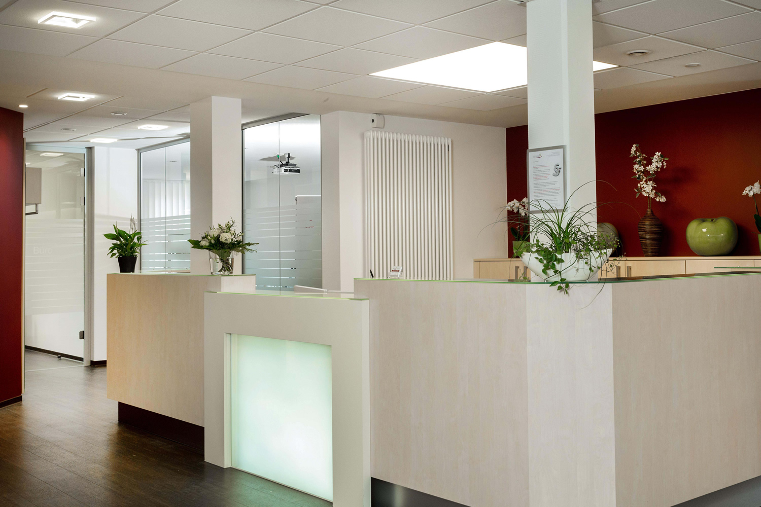 Wir erstellten das neue Praxiskonzept und die gesamte Praxisumbauplanung für alle Gewerke, einschließlich der Licht-, Farb- und Materialgestaltung. Des Weiteren wurde die Genehmigungsplanung durch uns erbracht. Außerdem übernahmen wir die Bauüberwachung der Umbaumaßnahmen, sowie die Planung und die Bauüberwachung der neuen Einrichtung, einschließlich der Vergabe und der Rechnungsprüfung.