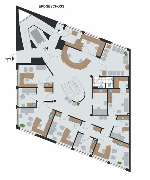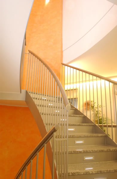 Die Gesamtnutzfläche beträgt ca. 600 m². Unsere Leistung umfasste die Leistungsphasen 1 – 9 der HOAI, die Funktions – und Innenraumplanung einschließlich der Möbelplanung, sowie das Farb- und Materialkonzept.