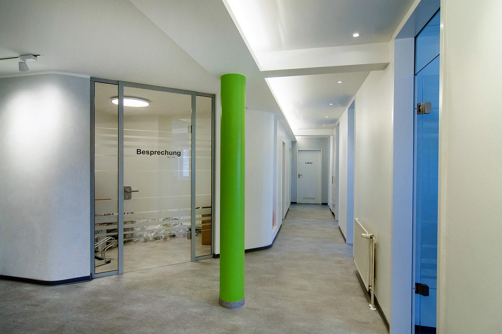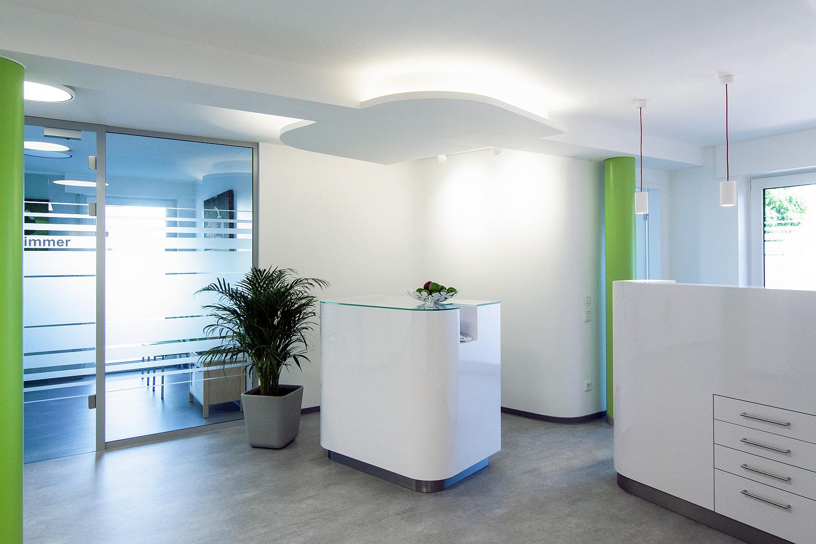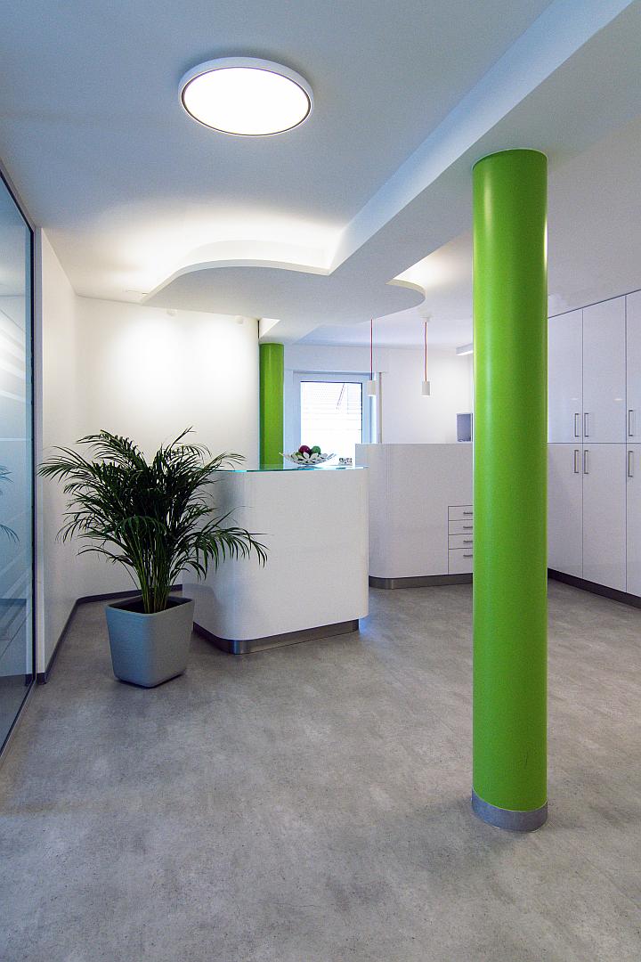 Bei dem vorgestellten Projekt handelt es sich um den Umbau und die Erweiterung einer seit ca. 20 Jahren bestehenden Zahnarztpraxis, mit Schwerpunkt auf der Prophylaxe.